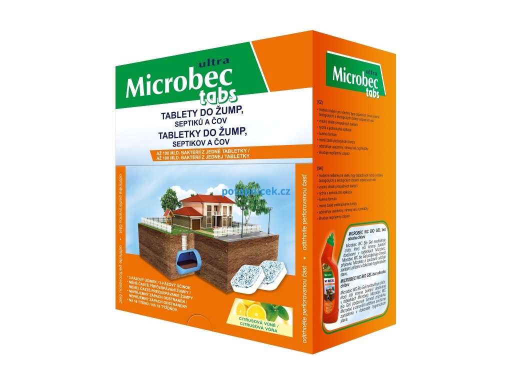 Mikrobiologický enzymatický produkt ve formě tablet pro biologický rozklad obsahu odpadních jímek a žump, určený i pro ekologicky šetrné systémy čištění odpadních vod. Při pravidelném používaní Microbecu se docílí snížení četnosti vyprázdňování septiku, podpoří se výkonnost lokálních systémů čistení odpadových vod. Microbec účinně likviduje nepříjemný zápach a zprůchodňuje soustavu sanitárních rozvodů.