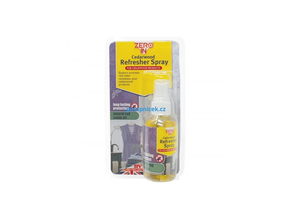 Osvěžující sprej s vůní cedrového dřeva, které je po staletí známo tím, že osvěžuje a chrání vlnu, bavlnu a kožešiny a další látky. Sprej revitalizuje produkty z cedrového dřeva a udržuje je déle funkční. Ideální pro osvěžení kroužků z cedrového dřeva proti šatním molům.